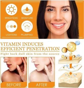 In addition to its brightening properties, Vitamin C offers gentle exfoliation. It helps remove dead skin cells, unclog pores, and reveal fresher, more youthful skin beneath. Say goodbye to dullness and hello to a smoother, more refined complexion.